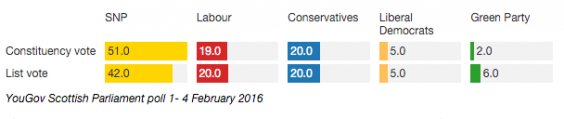 The Scottish National Party lead the pack with 51 per cent of the constituency vote and 42 per cent of the list vote.