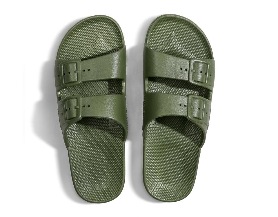 Freedom Moses-This shoe is the perfect versatile shoe for men. Going to shower after the gym? Slip them on. Hanging around the house? Slip them on. Waterproof, hand washable and cozy, Freedom Moses slides are perfect for making dinner on your feet, getting into messy crafts with kids, taking out the trash, or just hanging out! Throw on some socks and make them cool and comfy! $50