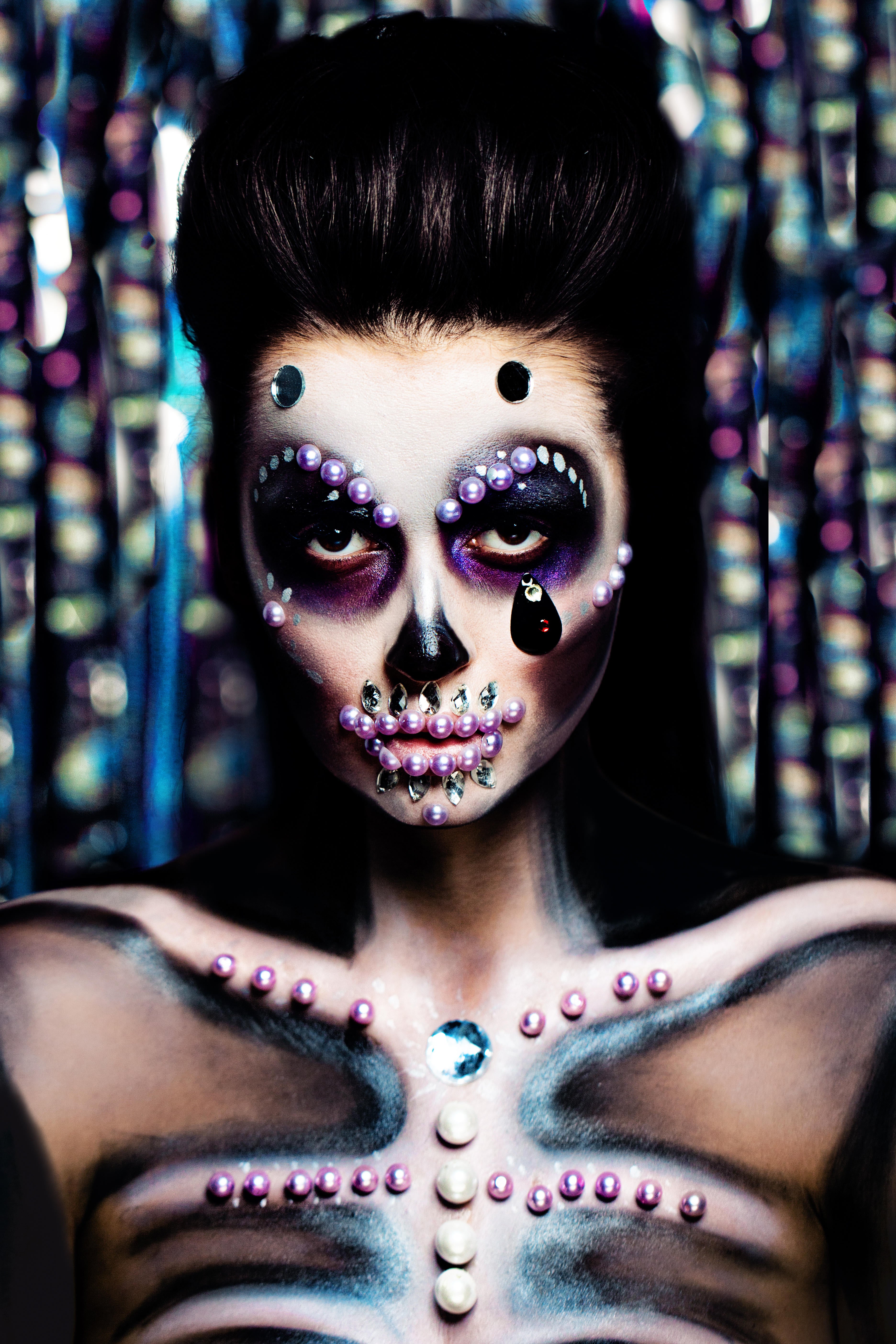 Studded around the eyes, on your cheekbones and around your lips mimic the high points of your face, where a skeleton would ordinarily protrude.