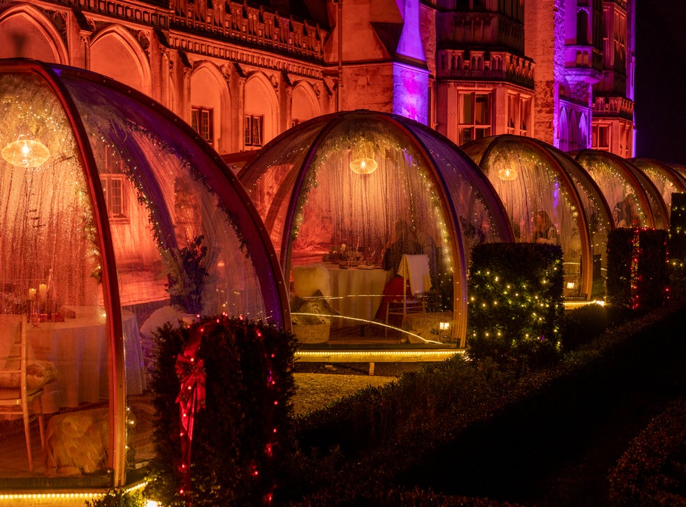 Want to dine out with loved ones but don’t fancy risking it jammed in a restaurant with a load of strangers? The Enchanted Garden Globes at Ashridge House in Hertfordshire offers the ideal socially distanced experience. Set outside the majestic stately home, once a royal residence for Henry VIII, the transparent domes come with heaters and blankets to keep guests warm, and are given the fully festive treatment with décor that marries Scandi chic with Christmas foliage. Diners receive a four or five-course meal, prosecco and wine, plus have access to an illuminated woodland walk after their meal.