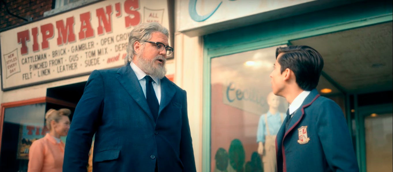 Klaus went through a lot in Season 1, but becoming a cult leader while stuck in the 1960s is certainly an unexpected twist. A speculative guess was that he would at least attend the Woodstock music festival, but he’s just full of surprises. The screenshot above tells us that he’s had some time to amass quite a loyal following. When Five tells him that the apocalypse will now happen in 1963, Klaus’ first and foremost concern is that his cult won’t take it well. After all, he did promise them that it wouldn’t occur until 2019. What will they think of him now?