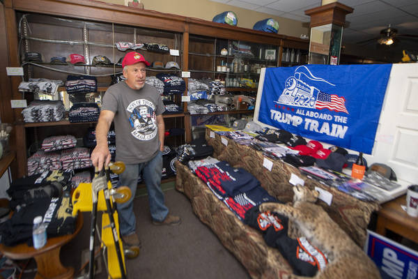 Across the street from Bangor's public library, Sam Hotchner owns a record and antiques shop that doubles as a Trump store with flags and paraphernalia. The president appeals to Hotchner's desire for smaller government, and he cited face-mask mandates and coronavirus restrictions on businesses as examples of overreach.