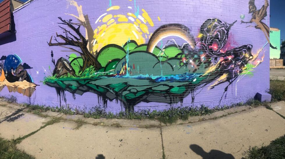 And sometimes his work ends up surviving longer than he expected, like at the Salt Shed, the old Morton Salt building at 1357 N. Elston Ave. Before the iconic building reopened after being transformed into an entertainment venue, Joos painted graffiti on an expanse of wall there and says the venue ended up keeping the painting, which can be seen by Salt Shed patrons.