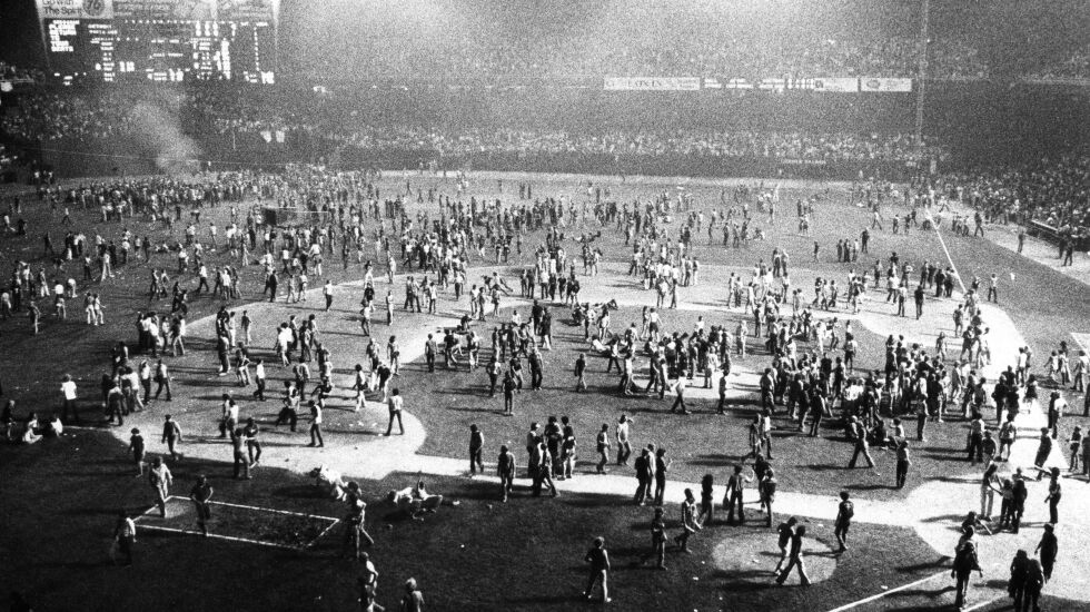 “The theme song seems to be, Disco Sucks. … [This is a] big rock ’n’ roll crowd.” – Harry Caray in the TV booth for the Chicago White Sox on the evening of July 12, 1979.