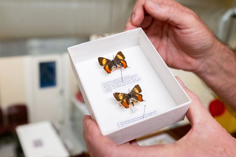 Worse still, he relabelled the important taxonomic specimens, using incorrect collector names and locations. In some instances, he swapped real butterflies for fakes – often closely related species, that in one famous case he painted to change its appearance. Wyatt’s theft had ongoing ramifications for insect collection research, where accuracy is critical for understanding distribution, evolution and diversity.
