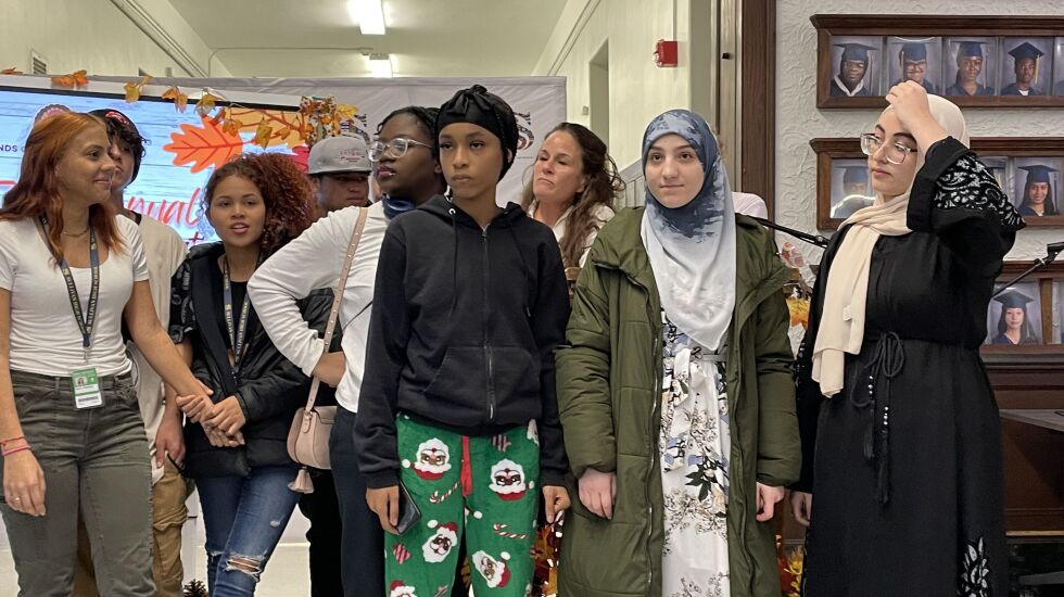 “Afghans, Syrians, Nepalese ... no one is special at this school because everyone is unique,” said Sarah Quintenz, whose formal title is English language learners leader, but really is just “Ms. Q” or “mom,” the omnipresent source of comfort and rebuke for Sullivan’s 360 or so foreign-born students — about half the school population.
