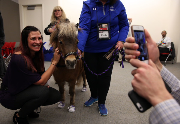 To escape the pressure, the 20-year-old college junior, who also works as a restaurant cashier to help pay for school, sculpted a chunk of blue Play-Doh into Popplio, a Pokemon character. She was at a table next to other students who colored and decorated cookies before two miniature therapy horses wearing sneakers trotted into the room Wednesday for the university's De-Stress Fest.