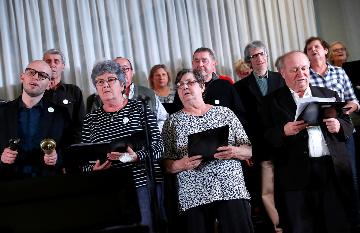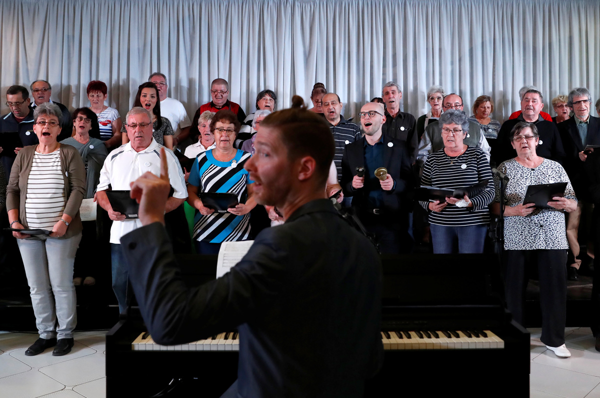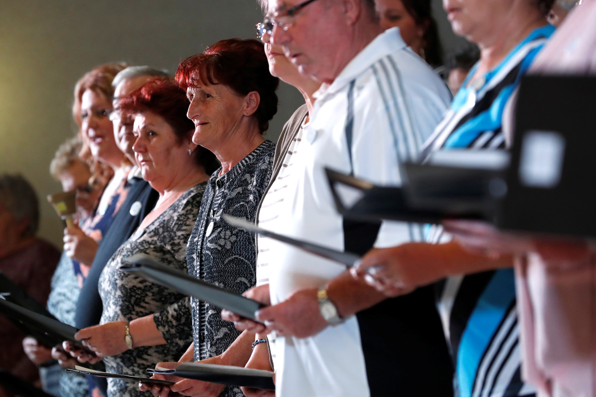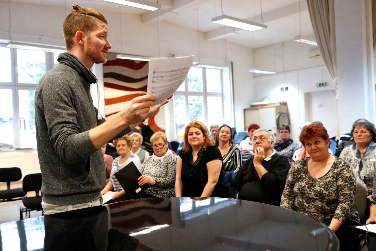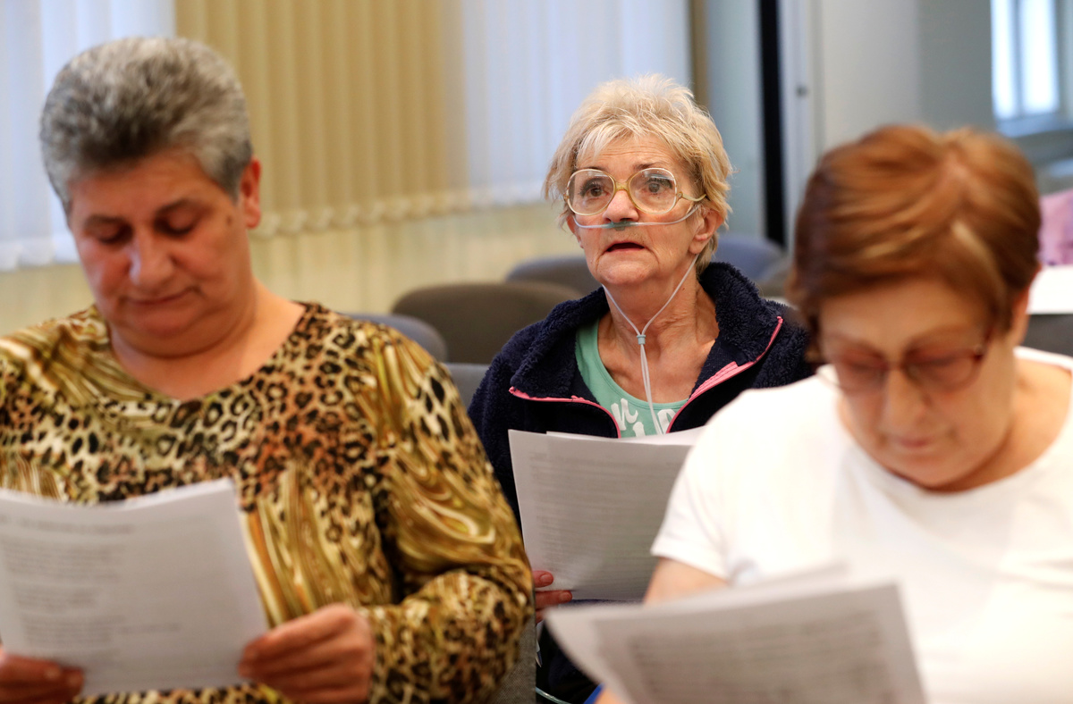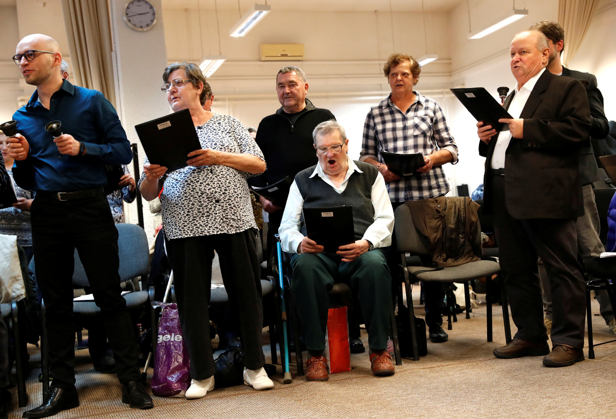 Members of the "Breathing for the Soul" choir, who are patients suffering from lung diseases, sing during a rehearsal in Budapest, Hungary, November 15, 2018. REUTERS/Bernadett SzaboConductor, Gyorgy Philipp talks during the rehearsal of the "Breathing for the Soul" choir, which is made up of patients suffering from lung diseases, in Budapest, Hungary, November 15, 2018. REUTERS/Bernadett SzaboMembers of the "Breathing for the Soul" choir, who are patients suffering from lung diseases, sing during a rehearsal in Budapestt, Hungary, November 15, 2018. REUTERS/Bernadett SzaboMembers of the "Breathing for the Soul" choir, who are patients suffering from lung diseases, sing during a rehearsal in Budapest, Hungary, November 11, 2018. REUTERS/Bernadett SzaboMembers of the "Breathing for the Soul" choir, who are patients suffering from lung diseases sing during a rehearsal in Budapest, Hungary, November 15, 2018. REUTERS/Bernadett SzaboMembers of the "Breathing for the Soul" choir, who are patients suffering from lung diseases attend a rehearsal in Budapest, Hungary, November 11, 2018. REUTERS/Bernadett SzaboMembers of the "Breathing for the Soul" choir, who are patients suffering from lung diseases attend a rehearsal in Budapest, Hungary, November 11, 2018. REUTERS/Bernadett Szabo
