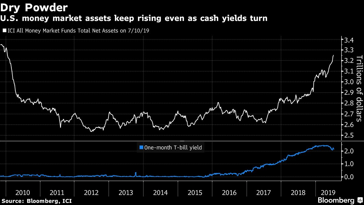 That leaves plenty of room for others to join in, including the investors who have piled some $3.25 trillion into money market funds, according to ICI data. As returns decline with rates, they may prefer to put the cash to work. The Bank of America survey showed cash levels fell from a month earlier.