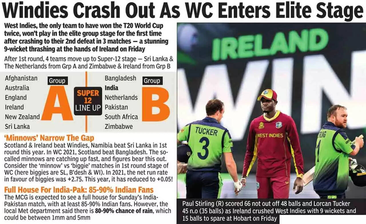 If there is one thing the group 1 stage of this T20 World Cup has driven home, it is that there are no longer any 'minnows' at the event. The stage started with former champions Sri Lanka being thrashed by Namibia and ended with Ireland dumping the West Indies, the only team to have won the Cup twice, out of the competition.