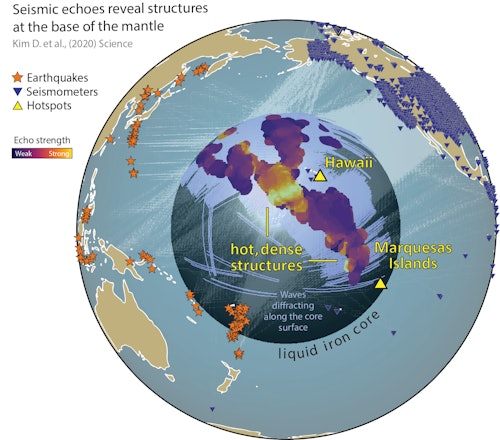To get a better idea of just how big these masses are, the researchers decided to create a new map of the ULVZs found around the Pacific Ocean blob. To do this, they used an algorithm known as "the Sequencer." While it was initially developed to find patterns in stellar radiation, the algorithm proved useful in mapping parts of the blob because of its ability to identify objects of different temperatures. Researchers collected 7,000 seismograms, which are measures of seismic waves, created by earthquakes that were recorded in Asia and Oceania between 1990 and 2018. All of the quakes were of magnitude 6.5 or greater. They ran those measures through the algorithm, which allowed them to trace the shape of the blobs, revealing more details about their size and structure. They found that the previously undetected ULVZs stretched for about 620 miles, reaching the Marquesas Islands in the South Pacific Ocean. Another part of the blob extended all the way to the Hawaiian Islands.