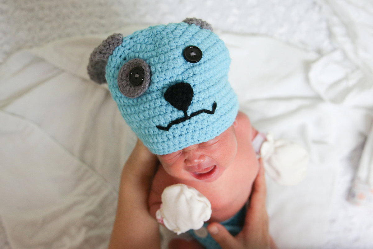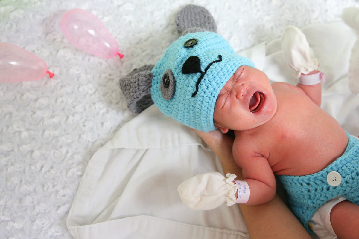 Staff at the Paolo Memorial Hospital Chokchai 4 dressed the babies in blue and brown crochet hats with dog ears and matching outfits for a photoshoot.