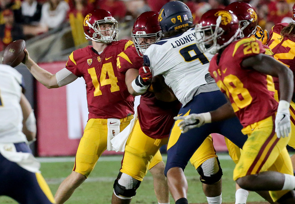 Against Cal, Darnold endured his highest turnover total yet, with three. A blindside sack by DaVante Wilson jarred the ball loose in the first half. Darnold fumbled on the next possession too. The Bears converted the turnovers into 10 points. He lobbed an interception into double coverage in the fourth quarter.