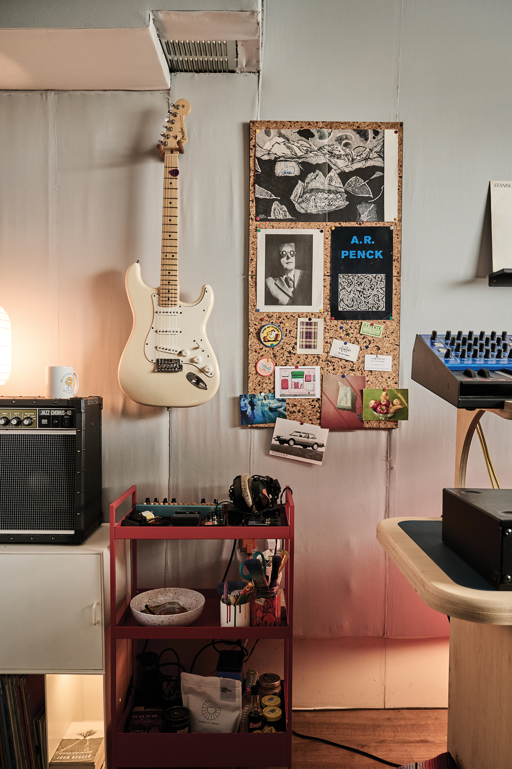 “My Dad’s always worked from home as a designer and his study is what I based my studio on. More of a homely and welcoming space than a 'studio' studio; an appealing place to be and have ideas, with records and books and things hanging on the wall. For me, there’s no bigger turn-off than going into a room that feels like a spaceship with a massive chair and loads of posh gear that you don’t want to touch. I only want to have things that are being used and kept in workable condition.