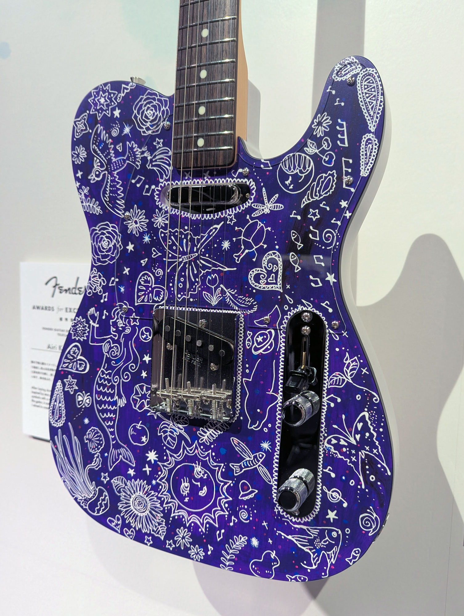 Three guitars were selected as recipients of the company’s Awards for Excellence. Airi Kutsukake’s purple design was the first winner. An intricate collage of creatures, plants and symbols, it’s perhaps the closest visually to a genuine Custom Shop design.
