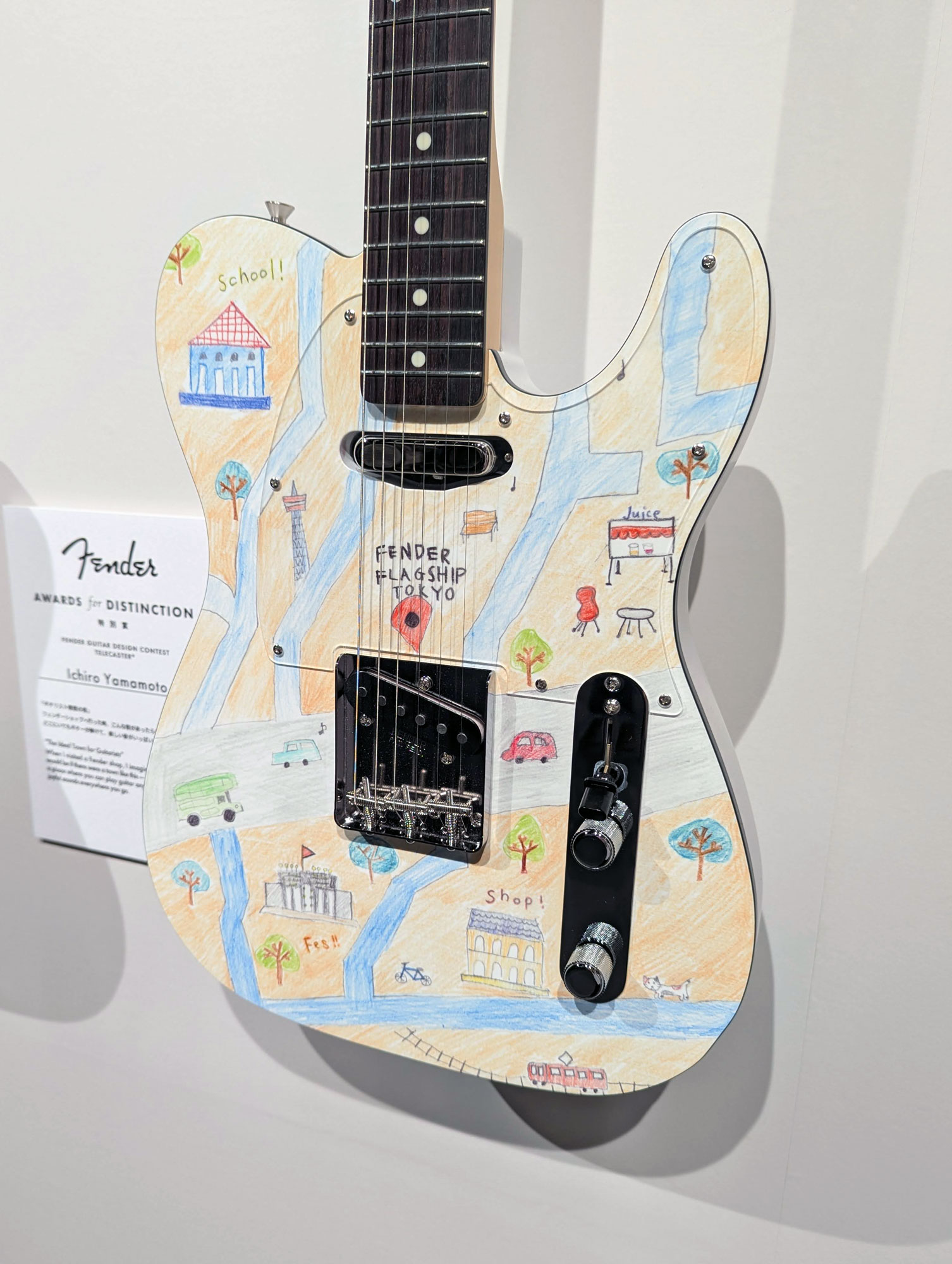 Finally, after receiving 100 submissions from children under 11, Fender added a second category to the competition: Awards for Distinction. Its winner, 11-year-old Ichiro Yamamoto, used his design to depict ‘The ideal town for guitarists’, placing Fender Flagship Tokyo right at the center.
