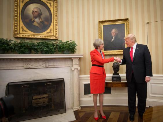 Asked whether she viewed the executive order as an “action of the leader of the free world”, the Prime Minister replied that she was “very pleased” to have met Mr Trump, before evading the question by hailing Turkey’s reception of millions of refugees.