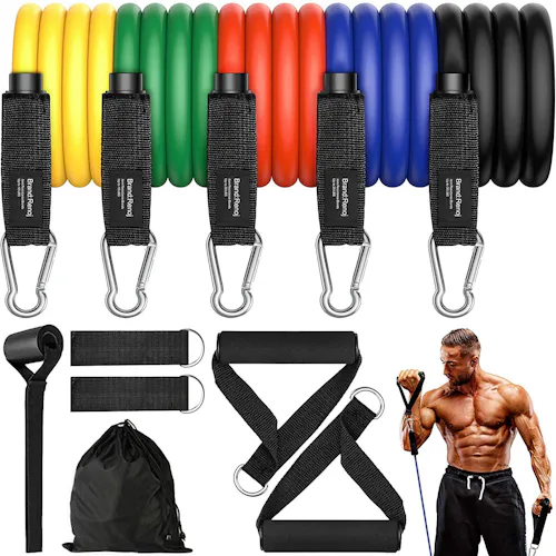 It doesn't matter if you have a full home gym or you're working out in a small corner, there's a place for these latex resistance bands. This set comes with five bands, each one almost 5 feet long, so you can use them on any part of your body. They range from 10 to 30 pounds of resistance, and the natural latex ensure they won't tear. Plus, you can stack them for up to 100 total pounds.