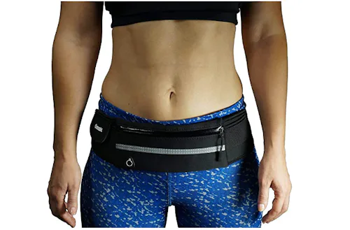 Not only can this water-resistant pack carry your phone, keys, and wallet, but reviewers mention that it's comfortable to wear while you're out on a run. It features a larger pocket in the front that's great for bigger items (like a smartphone), and two smaller pockets on each side that can hold money, a small wallet, headphones, and more. This pack is also made from moisture-wicking materials, so it'll protect your stuff from sweat and rain.