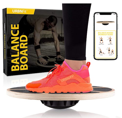 If you’re looking to do some stability and balance exercises, check out this board. With a durable plastic ball bottom and a solid wood base, you can stand on the board to work on your core, strength, flexibility, and balance. You can even use it at a standing desk to get a little workout in while on your computer.