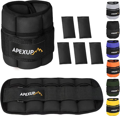 Great for ankles or wrists, these weighted bracelets feature five removable modules that allow you to adjust the weight from 1 pound to 5 pounds, depending on the exercises you’re doing. They’re made of a wear-resistant, breathable fabric, and have double Velcro straps to customize to the size of your ankle or wrist.