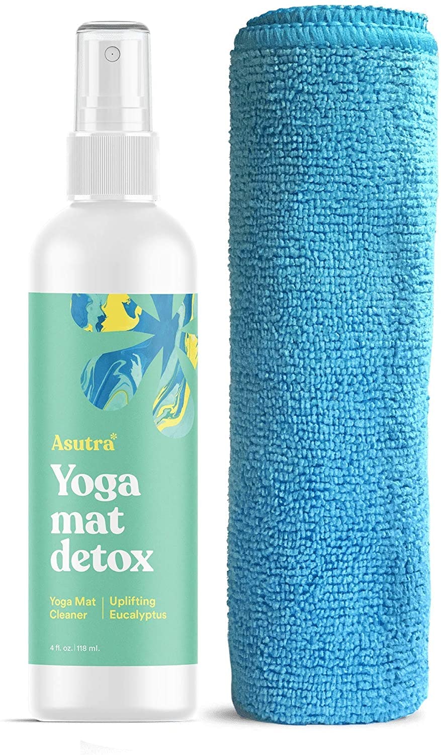 4. A cleansing yoga mat spray that comes with a microfiber towel