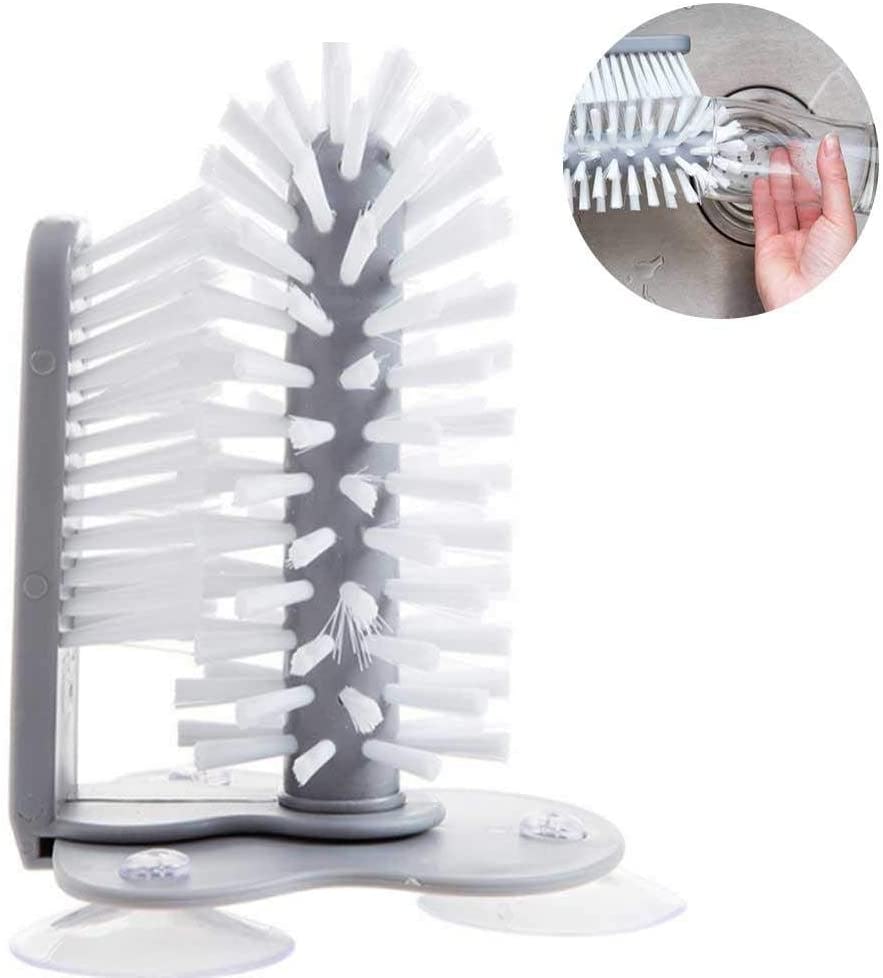 Not all scrubbers are long enough to fit all the way down into tall glasses — but this one is. The three suction cups on the bottom let you attach it to the side of your sink for added sturdiness, and the parallel bristle brush ensures that the outside of your cups are also clean.