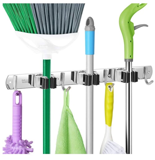 The broom & mop holder that mounts onto your wall
