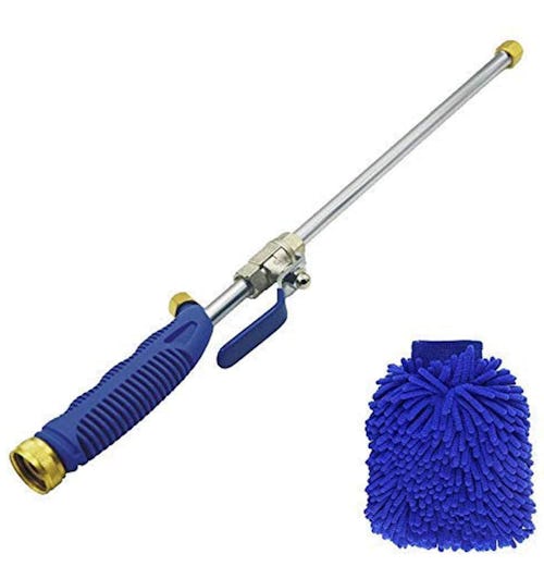 Turn your garden hose into a power-washing tool with this attachment. The high-pressure wand comes with two spray tips, a magic water jet, and a scrubbing mitt for easy use. Use it to wash your car or clean the house as desired.