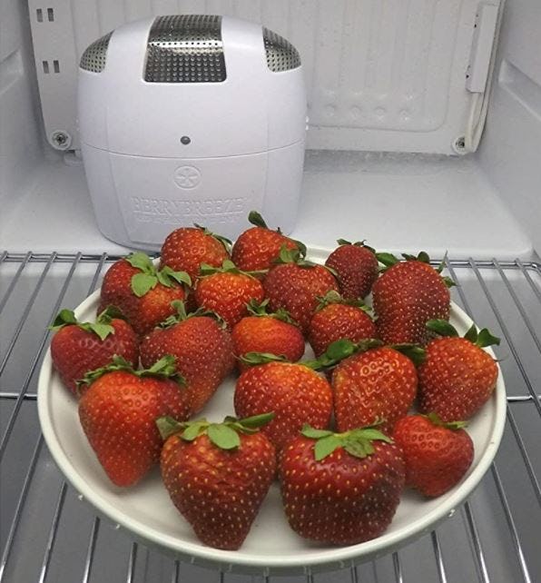 This clever oxygenating and deodorizing machine changes the interior atmosphere of your fridge to make it more conducive to the survival of produce. What normally happens in the closed environment of the fridge is that fruits give off ethylene gas, which causes produce to quickly ripen and rot. This device oxygenates the air, blocking the ethylene gas, so that your produce stays fresh. Produce is expensive. If it lasts longer, you will throw less of it away.