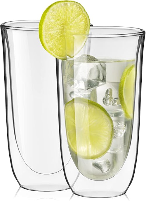 This set of two glasses is perfect for when you're sitting outside with a friend on a hot day. Each glass is double insulated so the inner core can keep your beverages chilled for hours. Plus, this unique design prevents condensation from forming so your glass stays dry, no matter how hot it gets outside. They're even made from scratch-resistant glass, so they're safe in the dishwasher.