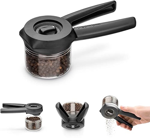 No more setting down your cooking utensils to season your meal, thanks to this innovative spice mill. Unlike other options on the market, this ceramic grinder can be used one-handed so you can salt and season your meals quickly and efficiently. It also comes with a food-grade plastic container that you can fill with any spice you want so you can easily switch them out according to your meal prep plans.