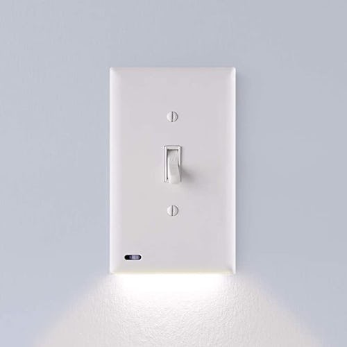 if you're tired of stumbling around in the dark looking for the light switch, this switch plate is a must-buy. It installs just like any other plate, but this one features an LED light along the bottom so you can actually see where the switch is in the dark. The light also features an automated sensor, so as you get closer it turns on to guide you the rest of the way, and when you walk away, it turns off again to conserve power.