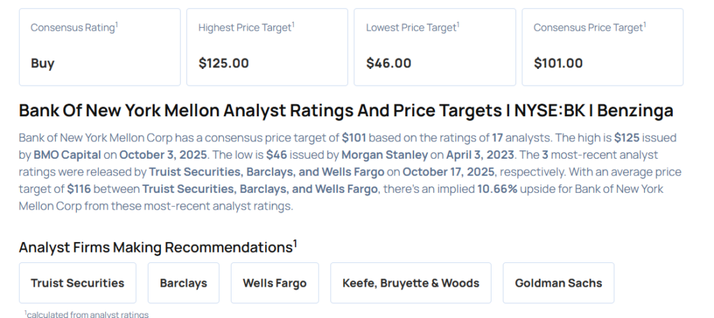 - Truist Securities analyst David Smith maintained Bank of New York Mellon with a Hold and raised the price target from $118 to $119.