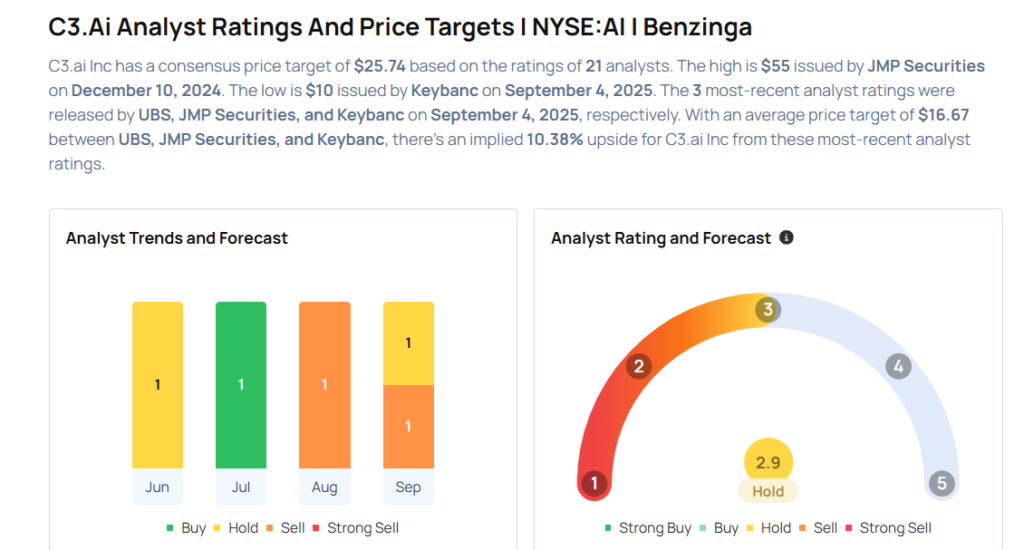 - Keybanc analyst Eric Heath maintained C3.ai with an Underweight rating and lowered the price target from $18 to $10.