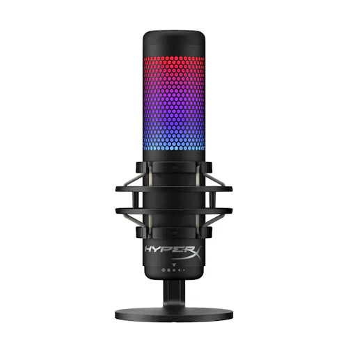 The HyperX QuadCast S is a plug-and-play USB microphone with great sound quality and a wild RGB light show that’ll fit in perfectly at a battle station. It comes attached to a shock mount to reduce interference from external noise and vibrations. It’s also certified to work flawlessly with Teamspeak and Discord, and comes with Ngenuity software to customize the lights and add audio effects to a stream.