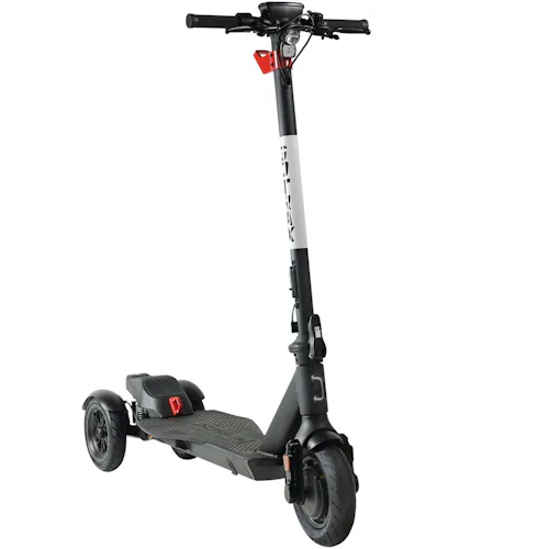 Weighing in at 52 pounds with a 10-inch pneumatic wheel up front, this three-wheel electric scooter is an absolute tank that can take on bumpy terrain with ease. The G Pro 3’s sturdy design, superior traction thanks to tilting back wheels, and excellent disc brakes make it a welcoming ride for e-scooter newbies and a worthwhile pick for experienced riders.