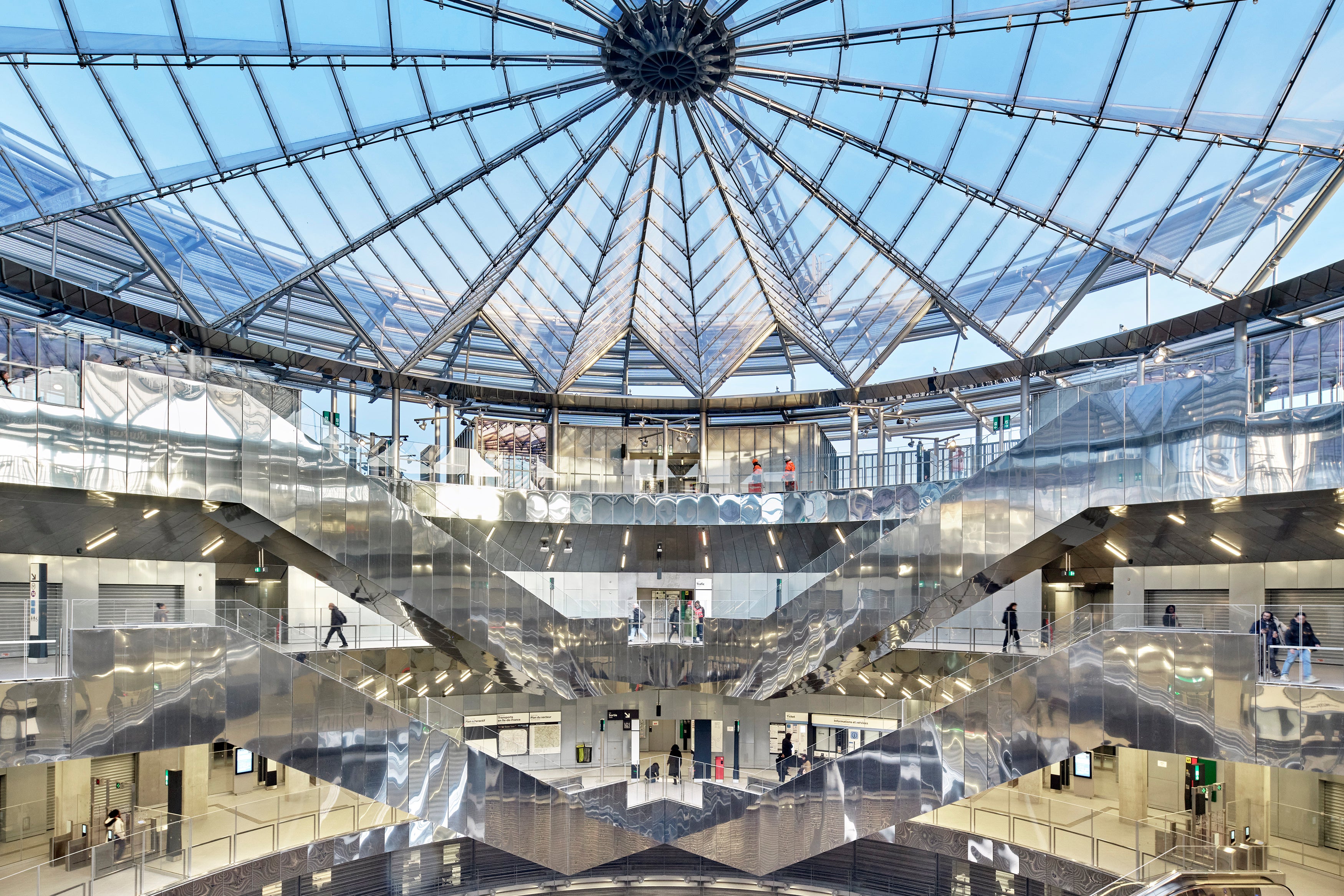 Saint-Denis Pleyel Station in France made it on the list due to its wooden atrium, decorated with Palaeolithic-inspired sculptures.
