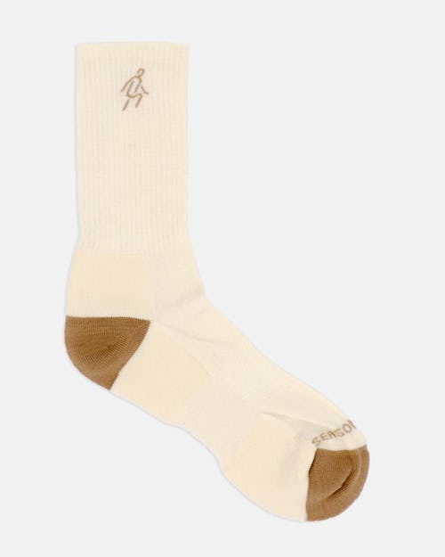 Whether you’re traveling through the back country or simply trying to reduce your suffering on the way to work, these tasteful cream socks in merino wool will go with most everything and have the added benefit of being resistant to odor.