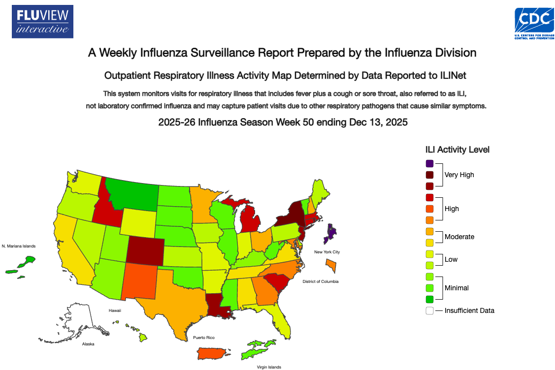 A CDC report found that there has been a surge in medical visits related to respiratory illness, with New York, New Jersey, Rhode Island, Louisiana and Colorado recording “very high” numbers of outpatient visits.