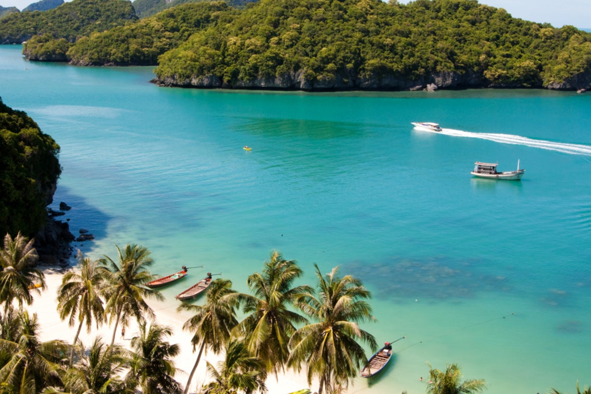 Getting there is a multi-transport game: hop on a bus or a very short flight from Bangkok to Trat, where you pick up a steampunk-style ferry that slowly chugs over to Thailand’s third-biggest island.