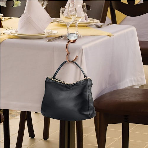 The Fred Shine + Dine looks like a giant diamond ring, but it actually functions as a gravity-defying handbag hook and a flashlight all in one. The ring opens to balance your bag on tables, bars, or bathroom stalls, while the LED light runs off of batteries and illuminates your whole purse when you can't find your keys.