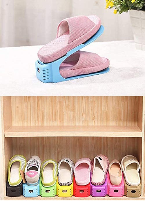 Double your storage space with these organizer slots, which stack one shoe on top of the other so each pair is compact and easy to spot. The two-tier design is adjustable so it works on virtually any pair (from flats to stilettos), and reviewers raved, "Great organization solution!” and “I LOVE them!”