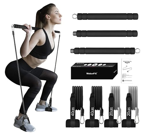 To tone your muscles and improve your stretches, you’ll want this pilates bar in your corner. The stainless steel rod is wrapped in a padded foam, which makes it comfortable to grip. This bar also comes with two different weights of foot straps, so you can adjust the resistance to 20, 40, or 60 pounds. Reviewers say this is a great way to get a full body workout in if you don’t have a ton of space.