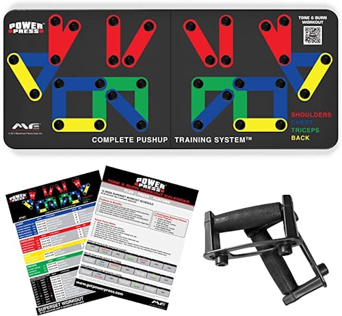 This push-up board clearly displays which positions will target which muscle groups. It’s actually color-coded to tell you how to focus on your back, chest, shoulders, or triceps. All you have to do is place the handles in the corresponding slots. In addition to being a workout guide, this board elevates the entire workout with the padded handles that promote better form and reduce wrist strain.