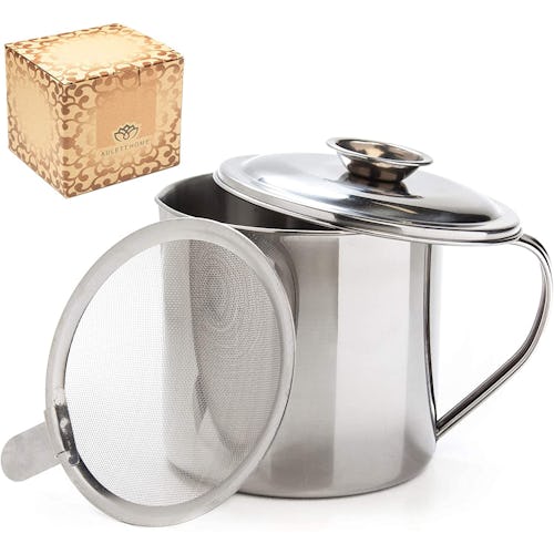 Before you dispose of that leftover bacon grease in the trash (never in the sink!), consider storing it inside this stainless steel container. With a detachable mesh sieve for pulling out larger bits, the grease holder keeps your leftover fat easily accessible. When you’re cooking later, you can use it to add extra flavor to your ingredients.