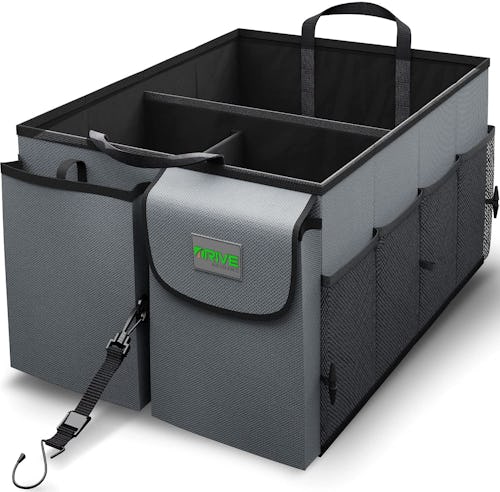 Designed with multiple compartments for your groceries, emergency tools, and more, this trunk organizer helps you cut down on clutter inside your car. Thanks to its waterproof interior lining, it’s resistant to all kinds of liquid spills. A set of steel-tipped tie-down latches ensure the organizer stays securely in place, even when you make a sharp turn.
