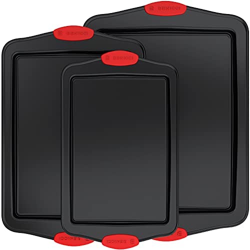 Premium Non-Stick Baking Sheets Set of 3 - Deluxe PBA Free, Easy to Clean Racks w/ Silicone Handles - Bakeware Pans for Cooking Baking Roasting - Lets You Bake The Perfect Cookie or Pastry Every Time