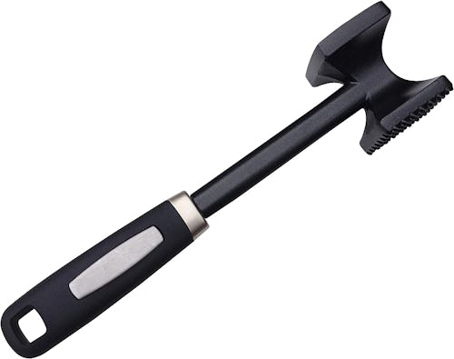 Thanks to its sturdy, nonslip rubber grip, this kitchen mallet won’t fly out of your hand while you work with your chicken, beef, or pork. The dual-ended head has a textured side for tenderizing and a flat side for pounding — both are covered in a nonstick coating for no-fuss use. Use this to prep steaks or to make chicken parmesan.