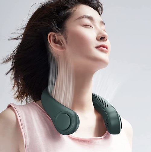 This whisper-quiet neck fan sits on your shoulders, gently directing cool air toward your body while you’re on the train, on a flight, or standing in line at an amusement park. The rechargeable unit is ultra-light and offers three different speed settings for a customizable experience. Choose from vibrant colors such as soft pink, bright yellow, and dark green, or opt for a neutral gray shade.